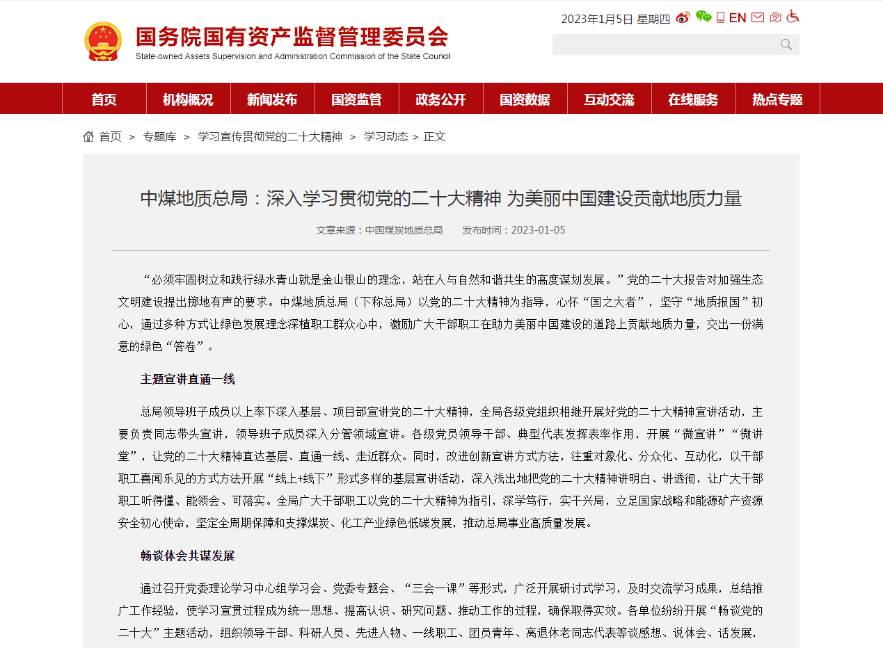 “必须牢固树立和践行绿水青山就是金山银山的理念,站在人与自然和谐共生的高度谋划发展。”党的二十大报告对加强生态文明建设提出掷地有声的要求。中煤地质总局(下称总局)以党的二十大精神为指导,心怀“国之大者”,坚守“地质报国”初心,通过多种方式让绿色发展理念深植职工群众心中,激励广大干部职工在助力美丽中国建设的道路上贡...