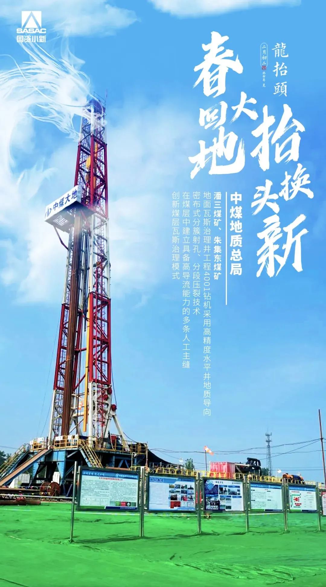 二月初二“龙抬头”万象更新,浩宇辽阔强国巨龙,腾空而起大国重器,硬核抬头带你一起感受中国巨龙的强劲脉动中煤地质总局潘三煤矿、朱集东煤矿地面瓦斯治理井工程4001钻机采用高精度水平井地质导向密布式分簇射孔、分段压裂技术在煤层中建立具备高导流能力的多条人工主缝创新煤层瓦斯治理模式在高质量发展的新征程上中央企业以昂...
