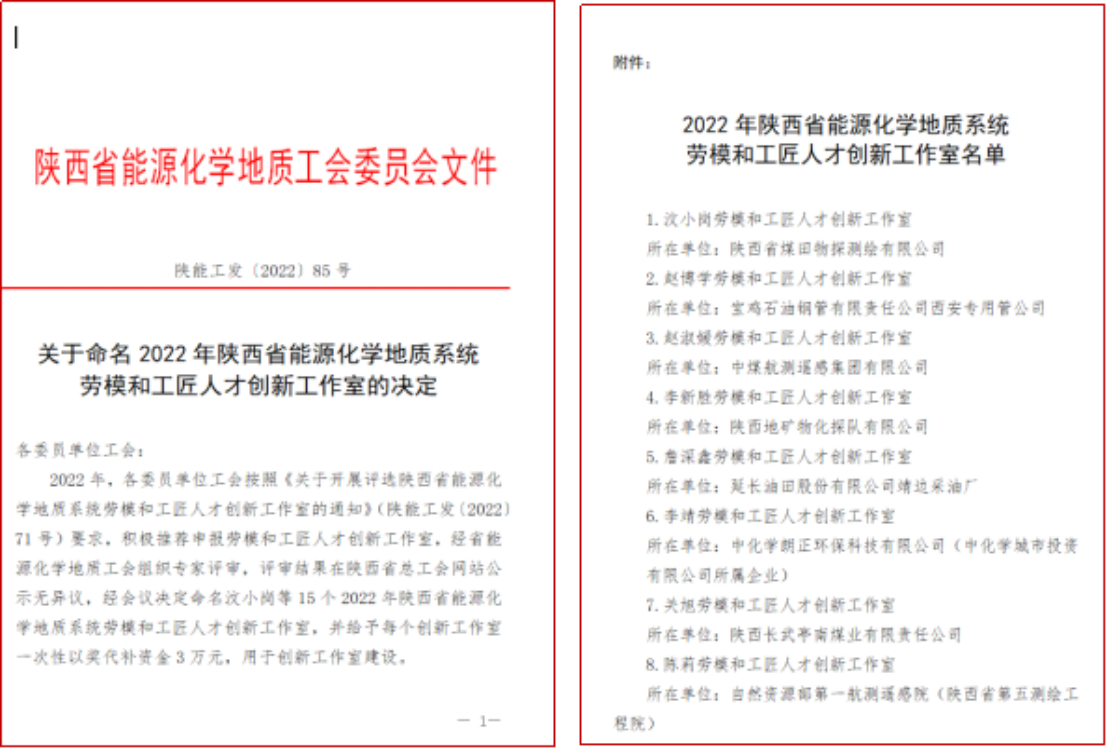 近日,陕西省能源化学地质工会印发文件,命名2022年陕西省能源化学地质系统劳模和工匠人才创新工作室, 煤航集团“赵淑媛劳模创新工作室”榜上有名。“赵淑媛创新工作室”硬件设施完善、工作制度健全、人员结构合理、创新效果显著,带动职工创新工作方面起到了模范带头作用。两年来,工作室承担并完成生产项目200余项;承担科研项目23项...