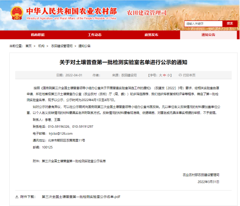 近日,农业农村部对第三次全国土壤普查第一批检测实验室名单进行了公示,全国共有126家检测实验室入选,中煤浙江检测名列其中。第三次全国土壤普查工作于2022年启动,计划到2025年实现对全国耕地、园地、林地、草地等的“全面体检”。自2月中旬国务院发布相关通知以来,中煤浙江检测全力准备实验室迎检工作,大力改造土壤制样间、购买实...