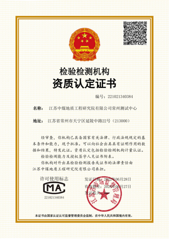 近日,江苏局地研院常州测试中心成功取得CMA计量认证许可证书,标志着其综合能力达到行业内先进水平。CMA (中国计量认证China Metrology Accreditation)表明该机构通过了省级以上人民政府计量行政部门计量认证。取得计量认证合格证书的检测机构,允许其在检验报告上使用CMA标记;有CMA标记的检验报告可用于产品质量评价、成果及司法...