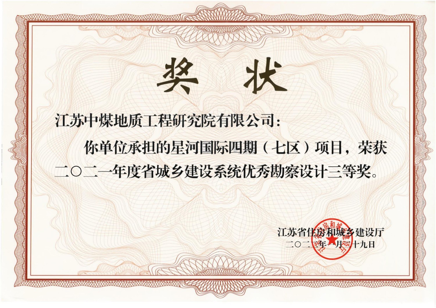 近日,江苏省住房和城乡建设厅下发了2021年省城乡建设系统优秀勘察设计评选获奖奖状,江苏局地研院承接的常州星河国际四期(七区)项目荣获2021年度省城乡建设系统优秀勘察设计三等奖。项目承接以来,地研院挑选精兵强将,严格按照勘察设计和规范要求科学布设勘察点,并采用机钻取土、双桥静力触探、标准贯入试验、波速测试、抽水试验等勘...