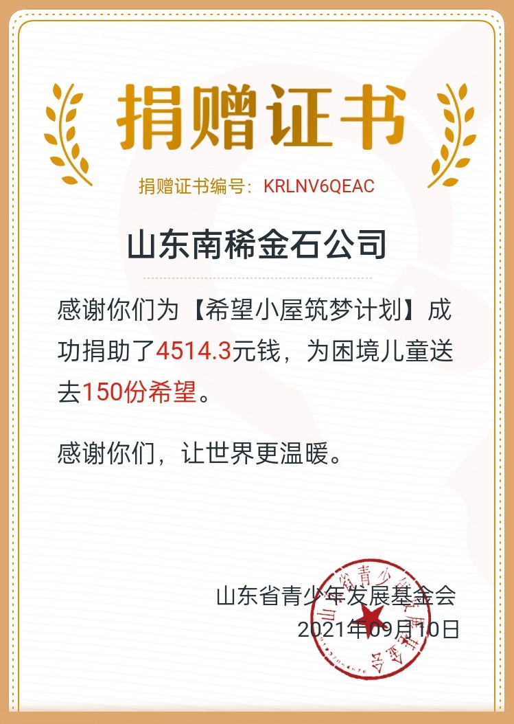 158人次广泛参与,4514元爱心善款,为困境儿童送去150份希望……9月以来,江苏局山东南稀金石新材料公司爱心团队通过“广泛宣传、线上组队、分享转发、党团带头、职工参与”等方式,助力梁山县“希望小屋”建设,汇聚成一股从...