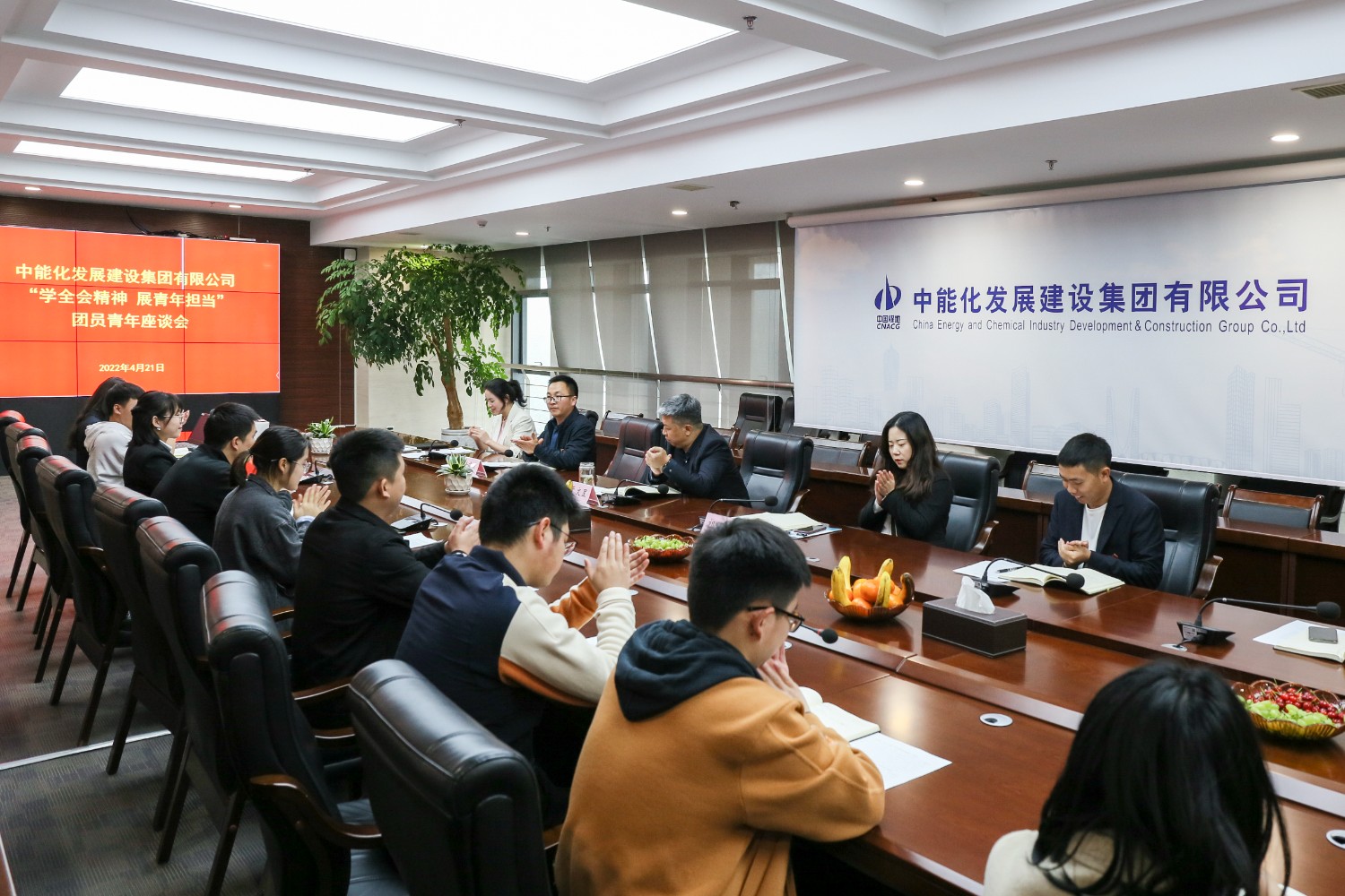 在五四青年节即将到来之际,4月21日,中能化建设组织举办党委书记与团员青年面对面交流座谈会,深入学习贯彻党的十九届六中全会精神,引导广大团员青年进一步把思想和行动统一到全会精神上来,永远听党话、跟党走,爱岗敬业、努...